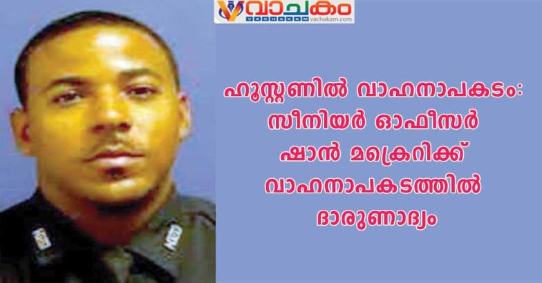ഹൂസ്റ്റൺ: ഹൂസ്റ്റൺ പോലീസ് ഡിപ്പാർട്ട്മെന്റിലെ സീനിയർ ഓഫീസറും ടാക്റ്റിക്കൽ ഓപ്പറേഷൻസ് വിഭാഗത്തിലെ അംഗവുമായ ഷാൻ മക്രെറി വാഹനാപകടത്തിൽ നിര്യാതനായി. നോർത്ത് വെസ്റ്റ് ഹാരിസ് കൗണ്ടിയിലുണ്ടായ അപകടത്തിൽ അദ്ദേഹം സഞ്ചരിച്ചിരുന്ന ഔദ്യോഗിക വാഹനം നിയന്ത്രണം വിട്ട് മരത്തിലിടിച്ച് തീപിടിച്ചാണ് ദുരന്തമുണ്ടായത്.