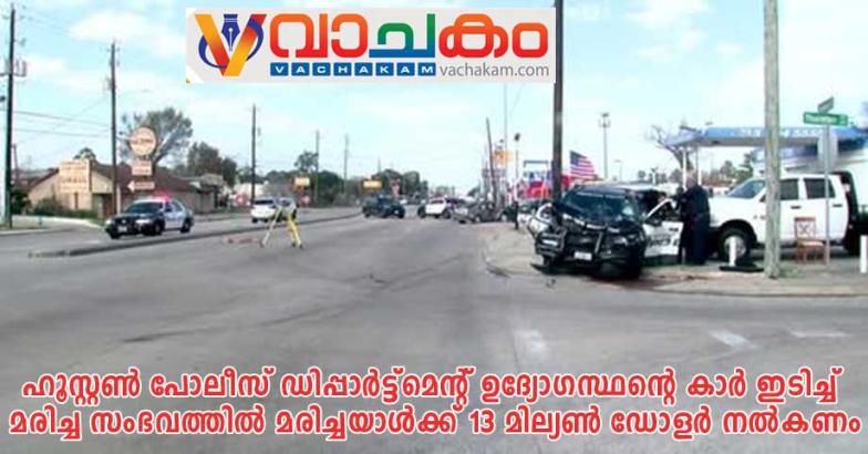 ഹൂസ്റ്റൺ: 2021ൽ ഒരു ഹൂസ്റ്റൺ പോലീസ് ഡിപ്പാർട്ട്മെന്റ് (HPD) ഉദ്യോഗസ്ഥന്റെ കാർ ഇടിച്ച് മരിച്ച 71 വയസ്സുള്ള മുത്തച്ഛന്റെ കുടുംബത്തിന് അനുകൂലമായി ഫെഡറൽ ജൂറി $13 മില്യൺ (ഏകദേശം 108 കോടി രൂപ) അനുവദിച്ചു.