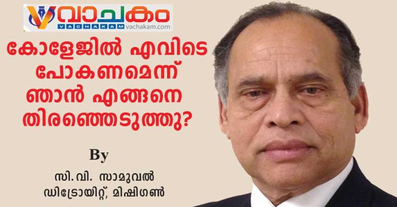 എന്റെ കുട്ടികളിൽ ഒരാൾ ഒരിക്കൽ എന്നോട് ചോദിച്ചു: കോളേജിൽ എവിടെ പോകണമെന്ന് നിങ്ങൾ എങ്ങനെ തീരുമാനിച്ചു? അതിന് ഉത്തരം നൽകാൻ, ഇന്ത്യയിലെ കേരളത്തിലെ മല്ലപ്പള്ളിയിലെ ആനിക്കാഡുള്ള സെന്റ് മേരീസ് കാത്തലിക് ഹൈസ്കൂളിലെ എന്റെ ഹൈസ്കൂൾ വർഷങ്ങളിൽ നിന്ന് ഞാൻ ആരംഭിക്കണം.
