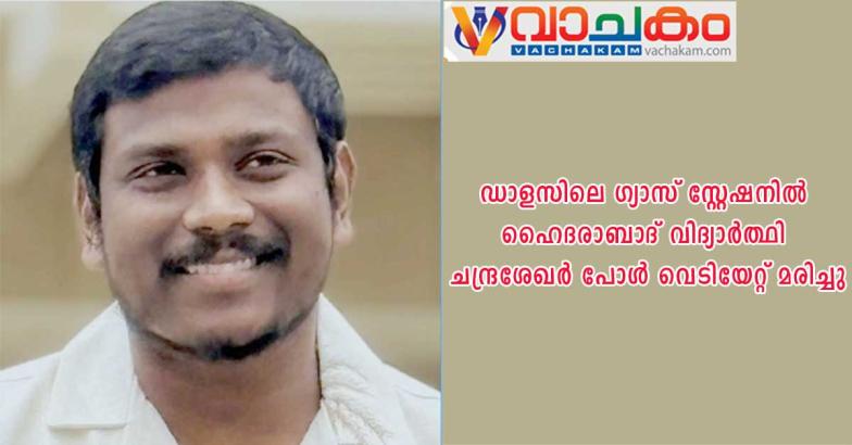 ഡാളസ് (ടെക്സാസ്): ഹൈദരാബാദിലെ എൽ.ബി. നഗർ സ്വദേശിയായ 28 കാരനായ വിദ്യാർത്ഥി ചന്ദ്രശേഖർ പോൾ വെള്ളിയാഴ്ച (ഒക്ടോബർ 3, 2025) രാത്രി ടെക്സസിലെ ഡെന്റണിലുള്ള ഒരു ഗ്യാസ് സ്റ്റേഷനിൽ പാർട്ട് ടൈം ജോലി ചെയ്യുന്നതിനിടെ അജ്ഞാതന്റെ വെടിയേറ്റ് ദാരുണമായി മരിച്ചു . ആറ് മാസം മുമ്പ് ബിരുദാനന്തര ബിരുദം പൂർത്തിയാക്കി ഉന്നത പഠനത്തിനായി 2023ലാണ് യുഎസിലേക്ക് താമസം മാറ്റിയത്.