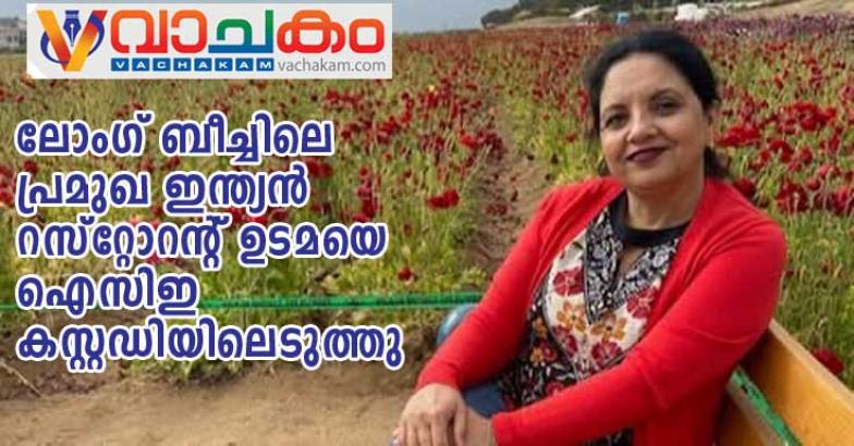 ലോംഗ് ബീച്ച്(കാലിഫോർണിയ): ലോംഗ് ബീച്ചിലെ ബെൽമോണ്ട് ഷോർ പ്രദേശത്തെ പ്രശസ്തമായ 'നട്രാജ് ക്യുസൈൻ ഓഫ് ഇന്ത്യ' റസ്റ്റോറന്റിന്റെ ഉടമയായ ബബിൾജിത് 'ബബ്ലി' കൗർ (60) ഇമിഗ്രേഷൻ കസ്റ്റഡിയിൽ.