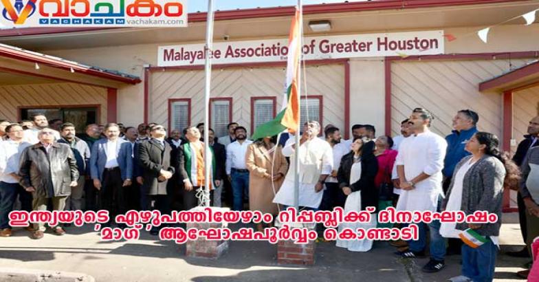 ഹൂസ്റ്റൺ: മാത്യ രാജ്യത്തിന്റെ സ്നേഹവും ബഹുമാനവും പ്രതിഫലിപ്പിച്ച് കൊണ്ട് നോർത്ത് അമേരിക്കയിലെ ഏറ്റവും വലിയ മലയാളി അസോസിയേഷനായ മലയാളി അസോസിയേഷൻ ഓഫ് ഗ്രേറ്റർ ഹൂസ്റ്റൺ ധമാഗ്പ ആസ്ഥാന മന്ദിരമായ കേരള ഹൗസിൽ ഭാരതത്തിന്റെ എഴുപത്തിയേഴാം റിപ്പബ്ബിക്ക് ദിനം ആഘോഷപൂർവം കൊണ്ടാടി.