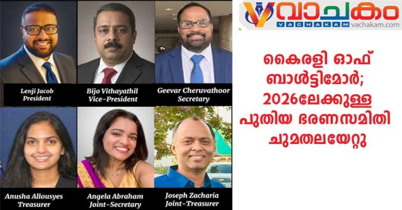 കൈരളി ഓഫ് ബാൾട്ടിമോർ; 2026ലേക്കുള്ള പുതിയ ഭരണസമിതി ചുമതലയേറ്റു
