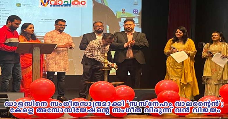 ഡാളസ്: പ്രണയത്തിന്റെയും സൗഹൃദത്തിന്റെയും സുന്ദരമായ ഓർമ്മകൾ പങ്കുവെച്ച് കേരള അസോസിയേഷൻ ഓഫ് ഡാളസ് സംഘടിപ്പിച്ച സസ്നേഹം വാലന്റൈൻ സംഗീത വിരുന്ന് അരങ്ങേറി. ഫെബ്രുവരി 14 ശനിയാഴ്ച വൈകുന്നേരം കരോൾട്ടണിലെ സെന്റ് ഇഗ്നേഷ്യസ് ചർച്ച് ഓഡിറ്റോറിയത്തിൽ നടന്ന പരിപാടിയിൽ ഡാളസിലെ സാമൂഹിക-സാംസ്കാരിക രംഗത്തെ പ്രമുഖരും നിരവധി സംഗീത പ്രേമികളും പങ്കെടുത്തു.