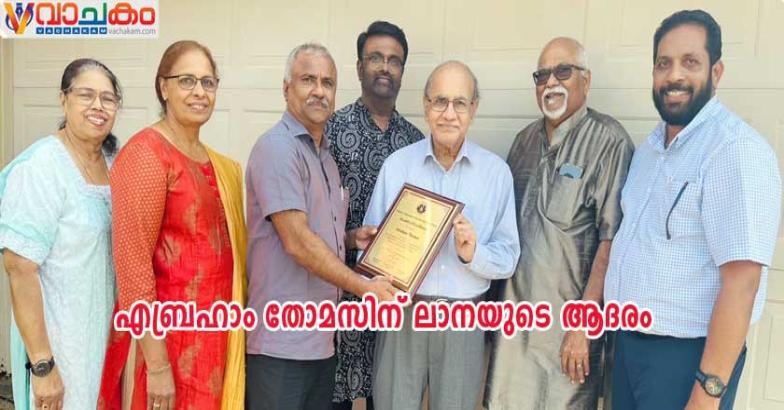 ഡാളസ്: ലിറ്റററി അസോസിയേഷൻ ഓഫ് നോർത്ത് അമേരിക്ക (ലാന) ഡാലസിലെ പ്രമുഖനും മുതിർന്ന സാഹിത്യകാരനുമായ എബ്രഹാം തോമസിനെ പ്രശംസാഫലകം നൽകി ആദരിച്ചു.