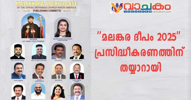 അമേരിക്കൻ മലങ്കര അതിഭദ്രാസന 36-ാമത് യൂത്ത് ആന്റ് ഫാമിലി കോൺഫറൻസിനോടനുബന്ധിച്ച് പ്രസിദ്ധീകരിക്കുന്ന 'മലങ്കര ദീപം 2025' പ്രസിദ്ധീകരണത്തിന് തയ്യാറായതായി ചീഫ് എഡിറ്റർ ബെൽമ റോബിൻ സെഖറിയ അറിയിച്ചു.