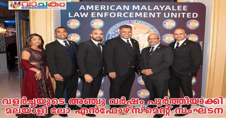ന്യൂയോർക്ക്: അമേരിക്കൻ മലയാളി ലോ എൻഫോഴ്സ്മെന്റ് യൂണൈറ്റഡ് (AMLEU) തങ്ങളുടെ അഞ്ചാം വാർഷികം ആഘോഷിക്കുന്ന വേളയിൽ പ്രൗഢഗംഭീരമായ അത്താഴ വിരുന്ന് സംഘടിപ്പിച്ചു. കഴിഞ്ഞ അഞ്ച് വർഷം കൊണ്ട് സംഘടന കൈവരിച്ച വളർച്ച, കരുത്തുറ്റ നേതൃത്വം, സമൂഹത്തിന് നൽകിയ സേവനം എന്നിവ വിളച്ചോതുന്നതായിരുന്നു ഈ സംഗമം.