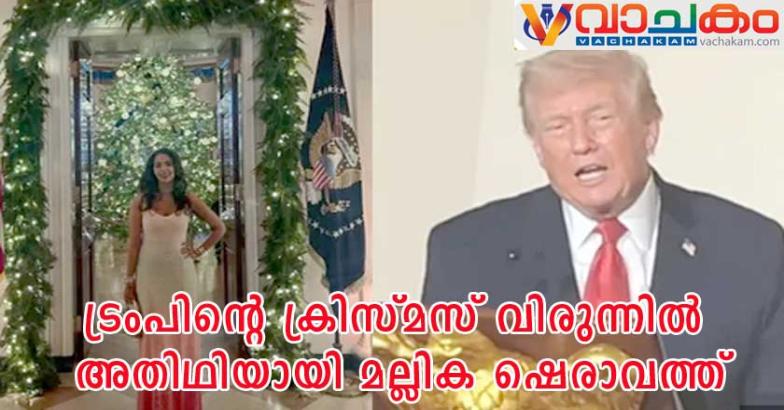 വാഷിംഗ്ടൺ ഡി.സിയിലെ വൈറ്റ് ഹൗസിൽ നടന്ന ക്രിസ്മസ് വിരുന്നിൽ ബോളിവുഡ് താരം മല്ലിക ഷെരാവത്ത് അതിഥിയായി പങ്കെടുത്തു. പ്രസിഡന്റ് ഡോണൾഡ് ട്രംപ് നൽകിയ ഈ ക്ഷണം തനിക്ക് ലഭിച്ച വലിയൊരു ബഹുമതിയാണെന്ന് താരം പ്രതികരിച്ചു.