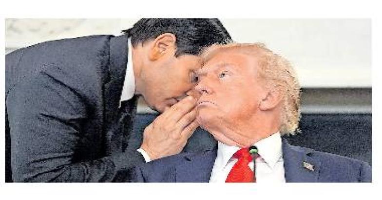 സ്റ്റേറ്റ് സെക്രട്ടറി മാര്ക്കോ റുബിയോ പലതവണ ട്രംപിന്റെ ശ്രദ്ധയാകര്ഷിക്കാന് ശ്രമിച്ചതും. ട്രംപിന് ഒരു വാര്ത്ത നല്കാനുണ്ടെന്നും മാധ്യമങ്ങള് പോയതിനു ശേഷമേ അതു പറയാനാകൂ എന്നും വ്യക്തമാക്കി. തുടര്ന്ന് റൂബിയോ ട്രംപിന്റെ അരികിലെത്തി കാതില് രഹസ്യമായി എന്തോ മന്ത്രിച്ചു. പിന്നെ കുറിപ്പ് കൈമാറി. കരാര് ആദ്യം പ്രഖ്യാപിച്ച് സമൂഹമാധ്യമത്തില് പങ്കുവയ്ക്കാനുള്ള പോസ്റ്റ് തയ്യാറാണ്. അനുമതി നല്കണം എന്നതായിരുന്നു കുറിപ്പ്. ഒട്ടും ക്ഷമ കാണിക്കാതെ ട്രംപ് ഉടന് പ്രഖ്യാപിച്ചു: തങ്ങള് മധ്യ പൂര്വദേശത്ത് സമാധാനം പുനസ്ഥാപിക്കാന് പോകുന്നുവെന്ന്.