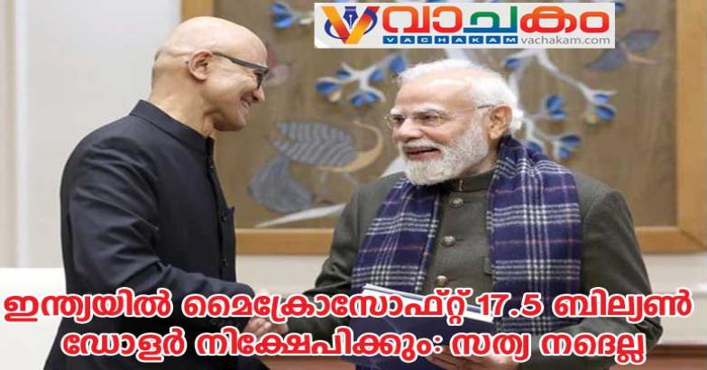ന്യൂയോർക്: ഇന്ത്യയിൽ എഐ വ്യാപനം വർദ്ധിപ്പിക്കുന്നതിനായി അടുത്ത നാല് വർഷത്തിനുള്ളിൽ ഇന്ത്യയിൽ 17.5 ബില്യൺ ഡോളർ നിക്ഷേപിക്കുമെന്ന് ആഗോള ടെക് ഭീമനായ മൈക്രോസോഫ്റ്റ് ഡിസംബർ 9 ന് പ്രഖ്യാപിച്ചു.