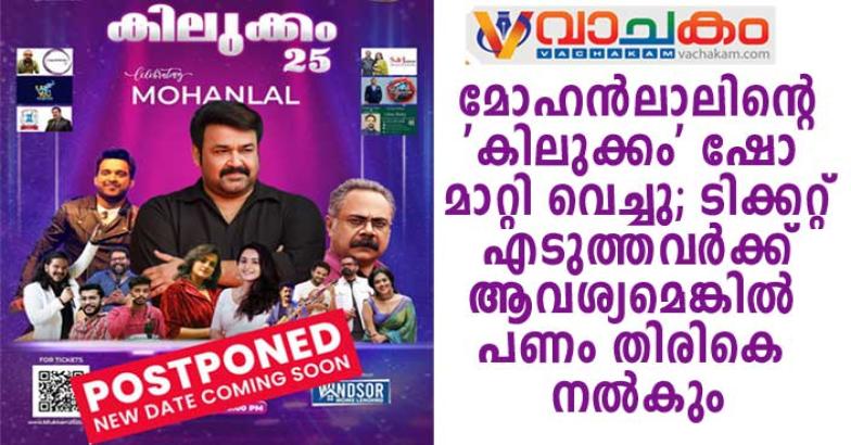 ന്യൂജെഴ്സി: അപ്രതീക്ഷിതമായുണ്ടായ ചില സാങ്കേതിക തടസ്സങ്ങൾ മൂലം, ഈ വർഷം സെപ്തംബർ 1ന് നടത്താനിരുന്ന മോഹൽലാൽ ഷോ 'കിലുക്കം 2025' മാറ്റി വെയ്ക്കാൻ സംഘാടകർ നിർബ്ബന്ധിതരാകുകയും, പ്രസ്തുത ഷോ 2026 ആദ്യ പാദത്തിലേക്ക് (First Quarter) മാറ്റി വെച്ചതായും പ്രോഗ്രാമിന്റെ നാഷണൽ സ്പോൺസറായ വിൻഡ്സർ എന്റർടൈൻമെന്റ് അറിയിച്ചു. 2025ൽ തന്നെ ഷോയുടെ ആതിഥേയത്വം വഹിക്കാൻ പ്രമോട്ടർമാർ ആത്മാർത്ഥമായി ആഗ്രഹിച്ചിരുന്നെങ്കിലും, അവരുടെ നിയന്ത്രണത്തിന് അതീതമായ ചില ഘടകങ്ങൾ കാരണം ഷെഡ്യൂൾ പുനഃക്രമീകരിക്കേണ്ടി വന്നു.