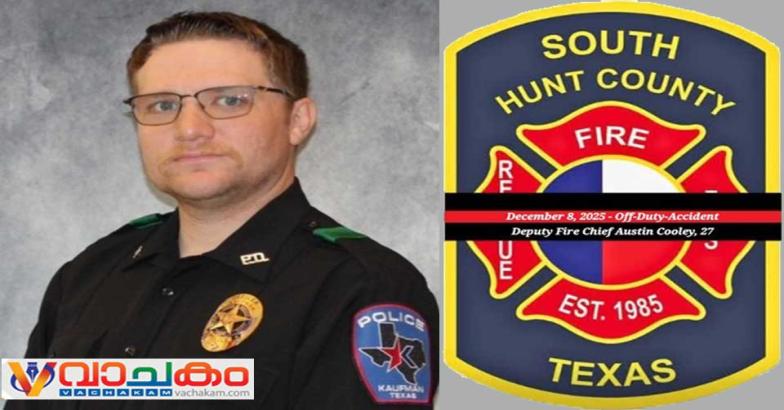 ഹണ്ട് കൗണ്ടി(ടെക്സസ്): നോർത്ത് ടെക്സസ് ഡെപ്യൂട്ടി ഫയർ ചീഫ് ജോലി കഴിഞ്ഞ് വീട്ടിലേക്ക് മടങ്ങുന്നതിനിടെ തിങ്കളാഴ്ച രാവിലെ നടന്ന വാഹനാപകടത്തിൽ കൊല്ലപ്പെട്ടതായി അധികൃതർ അറിയിച്ചു. സൗത്ത് ഹണ്ട് കൗണ്ടി ഫയർ റെസ്ക്യൂ പുറത്തുവിട്ട വിവരമനുസരിച്ച്, 27 വയസ്സുള്ള ഓസ്റ്റിൻ കൂളി ആണ് അപകടത്തിൽ മരിച്ചത്. കൗഫ്മാൻ പോലീസ് ഓഫീസർ എന്ന നിലയിലുള്ള ജോലി കഴിഞ്ഞ് മടങ്ങുകയായിരുന്നു അദ്ദേഹം.