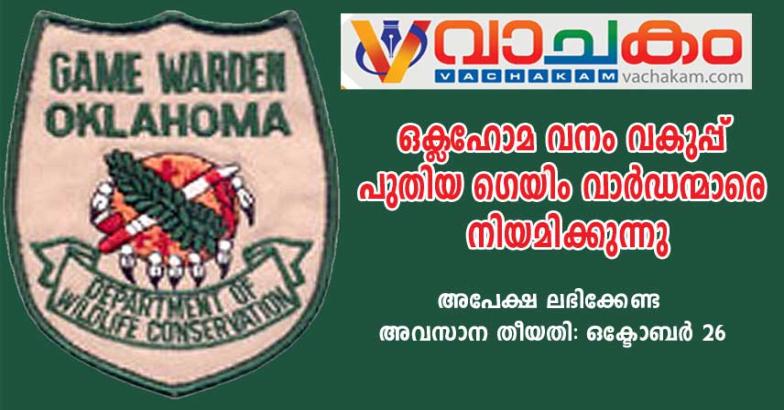 ഒക്ലഹോമ: ഒക്ലഹോമ വന്യജീവി സംരക്ഷണ വകുപ്പ് (ODWC) സംസ്ഥാനത്തുടനീളമുള്ള പുതിയ ഗെയിം വാർഡൻ തസ്തികകളിലേക്ക് അപേക്ഷകൾ സ്വീകരിക്കുന്നു, അപേക്ഷിക്കാനുള്ള അവസാന തീയതി 2025 ഒക്ടോബർ 26 ആയി നിശ്ചയിച്ചിരിക്കുന്നു.