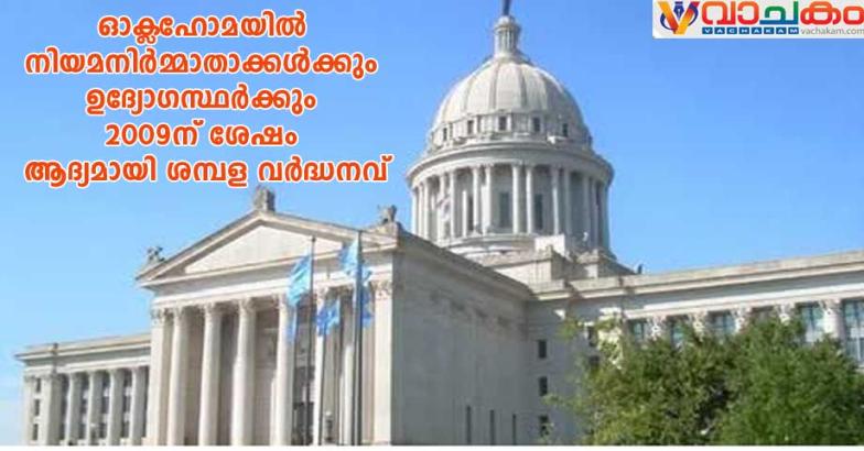 ഓക്ലഹോമ സിറ്റി: ഓക്ലഹോമ സംസ്ഥാന നിയമനിർമ്മാതാക്കൾക്കും തിരഞ്ഞെടുക്കപ്പെട്ട ഉദ്യോഗസ്ഥർക്കും 2009ന് ശേഷം ആദ്യമായി ശമ്പള വർദ്ധനവ് നൽകാൻ നിയമനിർമ്മാണ നഷ്ടപരിഹാര ബോർഡ് (Legislative Compensation Board) തീരുമാനിച്ചു. 2026ലെ തിരഞ്ഞെടുപ്പിന് ശേഷമാകും പുതിയ ശമ്പളം നിലവിൽ വരിക.
