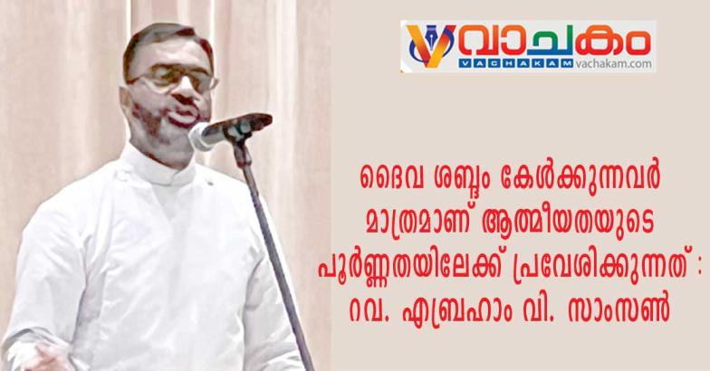 ഡാളസ്: ദൈവ ശബ്ദം കേൾക്കുന്നവർ മാത്രമാണ് ആത്മീയതയുടെ പൂർണ്ണതയിലേക്ക് പ്രവേശിക്കുന്നത്. അർത്ഥവത്തായ ആരാധനയ്ക്ക് ദൈവത്തിന്റെ ശബ്ദം കേൾക്കേണ്ടത് അത്യാവശ്യമാണെന്ന് റവ. എബ്രഹാം വി. സാംസൺ (വികാരി, ഫാർമേഴ്സ് ബ്രാഞ്ച് എംടിസി) ഉദ്ബോധിപ്പിച്ചു.