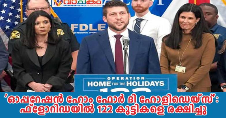 ഫ്ളോറിഡ: രണ്ടാഴ്ച നീണ്ടുനിന്ന 'ഓപ്പറേഷൻ ഹോം ഫോർ ദി ഹോളിഡെയ്സ്' എന്ന രക്ഷാദൗത്യത്തിലൂടെ 120ൽ അധികം കാണാതായ കുട്ടികളെ കണ്ടെത്തി സുരക്ഷിതരാക്കിയതായി ഫ്ളോറിഡ സംസ്ഥാന അധികൃതർ അറിയിച്ചു. ലൈംഗിക ചൂഷണത്തിന് ഇരയാകുന്ന കുട്ടികളെ ലക്ഷ്യമിട്ടായിരുന്നു ഈ ദൗത്യം.