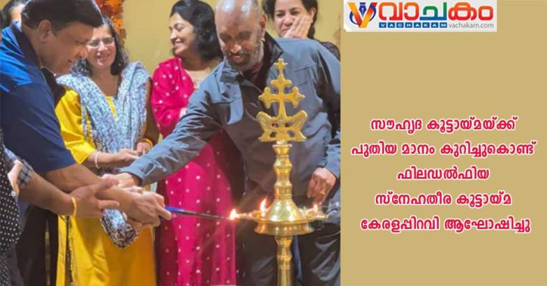 ഫിലഡൽഫിയ : ഫിലഡൽഫിയായിലും, പരിസരപ്രദേശങ്ങളിലുമുള്ള മലയാളികളുടെ പരസ്പര സഹകരണത്തിനും, സൗഹൃദത്തിനും, ഒത്തുകൂടലിനും, അത്യാവശ്യ ഘട്ടങ്ങളിലെ പരസ്പര സഹായങ്ങൾക്കും ഊന്നൽ നൽകിക്കൊണ്ട് രൂപീകൃതമായ സൗഹൃദ സംഗമ കൂട്ടായ്മയായ 'സ്നേഹതീരം - സൗഹൃദ കൂട്ടായ്മ' യുടെ കേരളപ്പിറവി ദിനാഘോഷങ്ങൾ നവംബർ 9ന് വൈകുന്നേരം 3 മണി മുതൽ ഫിലഡൽഫിയ വർത്തിഗ്ടൺ റോഡിലുള്ള ഷിബു മാത്യു - ജെസ്സി ദമ്പതികളുടെ വസതിയിൽ വച്ചു വളരെ ലളിതമായി നടത്തപ്പെട്ടു.