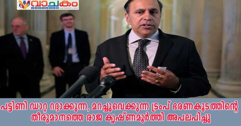 ഷാമ്പ്ബർഗ്(ഇല്ലിനോയ്): അമേരിക്കയിലെ പട്ടിണി ട്രാക്കുചെയ്യുന്നതിനുള്ള നിർണായക USDAയുടെ ഗാർഹിക ഭക്ഷ്യസുരക്ഷാ റിപ്പോർട്ട് റദ്ദാക്കാനുള്ള ട്രംപ് ഭരണകൂടത്തിന്റെ തീരുമാനത്തെ കോൺഗ്രസുകാരനായ രാജ കൃഷ്ണമൂർത്തി അപലപിച്ചു. ജൂലൈയിലെ 'ലാർജ് ലൗസി ലോ' ബജറ്റിനെ തുടർന്നാണ് ഈ നീക്കം, റിപ്പബ്ലിക്കൻമാർ സപ്ലിമെന്റൽ ന്യൂട്രീഷൻ അസിസ്റ്റൻസ് പ്രോഗ്രാമിൽ (SNAP) നിന്ന് 186 ബില്യൺ ഡോളറിലധികം വെട്ടിക്കുറച്ചതായി അദ്ദേഹം പറഞ്ഞു.