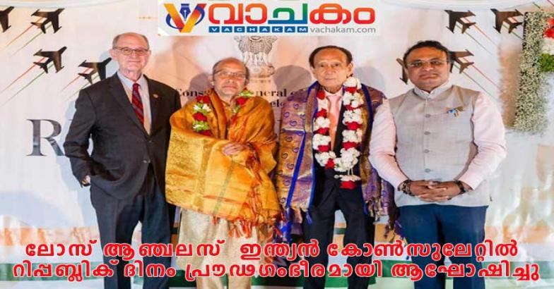 ലോസ് ആഞ്ചലസ് : ലോസ് ആഞ്ചലസിലെ ഇന്ത്യൻ കോൺസുലേറ്റിന്റെ ആഭിമുഖ്യത്തിൽ ഇന്ത്യയുടെ 77-ാം റിപ്പബ്ലിക് ദിനം പ്രൗഢഗംഭീരമായി ആഘോഷിച്ചു. ലോസ് ആഞ്ചലസ് ഡൗൺടൗണിലെ കാലിഫോർണിയ ക്ലബ്ബിൽ നടന്ന ചടങ്ങിൽ പ്രമുഖ രാഷ്ട്രീയ നേതാക്കളും നയതന്ത്രജ്ഞരും സാംസ്കാരിക പ്രവർത്തകരും പങ്കെടുത്തു.