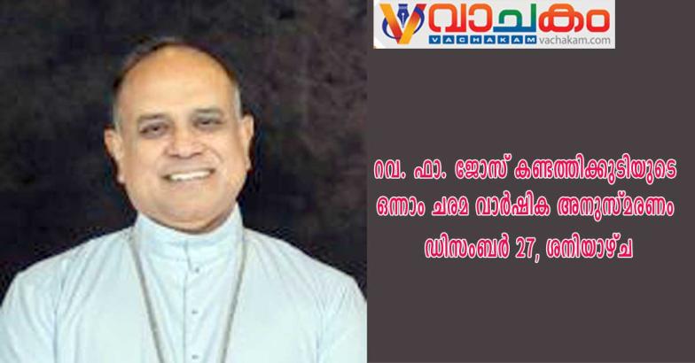 ന്യൂയോർക്ക് : അമേരിക്കയിൽ സീറോ മലബാർ സമൂഹം കെട്ടിപ്പടുക്കുന്നതിൽ നിർണ്ണായകമായ സംഭാവനകൾ നൽകിയ റവ. ഫാ. ജോസ് കണ്ടത്തിക്കുടിയുടെ ഒന്നാം ചരമ വാർഷികം, ഡിസംബർ 27 -ാം തിയതി ശനിയാഴ്ച ബ്രോങ്ക്‌സ് സൈന്റ്‌സ് തോമസ് സീറോ മലബാർ ഫൊറോനാ ദേവാലയത്തിൽ വച്ചു സമുചിതമായി ആചരിക്കുന്നു.