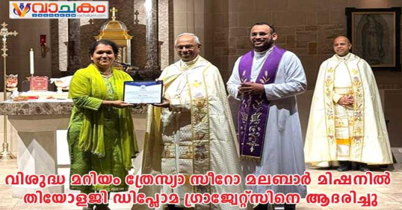 വിശുദ്ധ മറിയം ത്രേസ്യാ സീറോ മലബാർ മിഷനിൽ തിയോളജി ഡിപ്ലോമ ഗ്രാജ്വേറ്റ്‌സിനെ ആദരിച്ചു