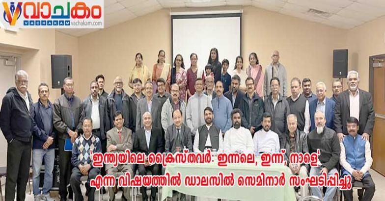 ഡാലസ്: ക്രിസ്ത്യൻ അപ്പോളജറ്റിക്സ് ഡാലസിന്റെ ആഭിമുഖ്യത്തിൽ 'ഇന്ത്യയിലെ ക്രൈസ്തവർ: ഇന്നലെ, ഇന്ന്, നാളെ' എന്ന വിഷയത്തിൽ സെമിനാർ സംഘടിപ്പിച്ചു. ഡിസംബർ 18 വ്യാഴാഴ്ച വൈകിട്ട് 7 മണിക്ക് ഡാലസ് സെന്റ് പോൾസ് മാർത്തോമ്മ ദേവാലയത്തിൽ വെച്ച് നടന്ന പരിപാടിയിൽ പ്രമുഖ പ്രഭാഷകനും എഴുത്തുകാരനുമായ റവ. ഡോ. ജോൺസൺ തേക്കടയിൽ മുഖ്യ പ്രഭാഷണം നടത്തി. ഇന്ത്യയിലെ ക്രൈസ്തവ സമൂഹത്തിന്റെ ചരിത്രപരമായ പശ്ചാത്തലവും വർത്തമാനകാല വെല്ലുവിളികളും സെമിനാറിൽ ചർച്ചയായി. ഒക്ലഹോമയിൽ നിന്നും എത്തിയ മണിപ്പൂർ സ്വദേശിയും ലവ് മിനിസ്ട്രി പാസ്റ്ററുമായ ഡോ. സായി ടൗത്ഹങ് തന്റെ കുടുംബാംഗങ്ങൾ അനുഭവിച്ച പീഡനങ്ങളെ കുറിച്ച് വിശദീകരിച്ചത് കേൾവിക്കാരുടെ കണ്ണുകളെ ഈറനണിയിച്ചു.