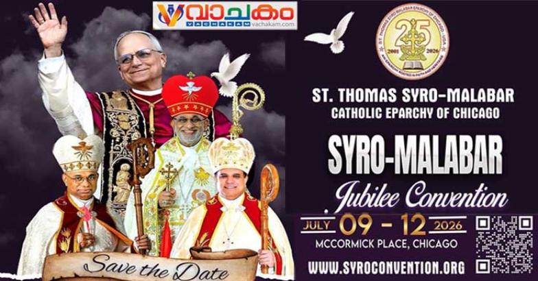 അനന്തമായ ദൈവ പരിപാലനയിൽ, വിശ്വാസ വളർച്ചയുടെ ഇരുപത്തഞ്ചു വർഷങ്ങൾ പൂർത്തിയാക്കുന്ന ഷിക്കാഗോ സീറോ മലബാർ രൂപത സിൽവർ ജൂബിലി നിറവിൽ !! ജൂബിലി ആഘോഷങ്ങളുടെ ഭാഗമായി 2026 ജൂലൈ 9-12 തീയതികളിൽ ഷിക്കാഗോയിൽവച്ചു നടക്കുന്ന കൺവെൻഷന് വിശ്വാസികളിൽ നിന്നും ആവേശകരമായ പ്രതികരണമാണ് ലഭിച്ചുകൊണ്ടിരിക്കുന്നത്.