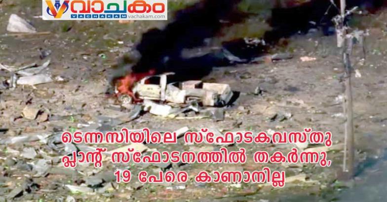 മെക്ക്വെൻ(ടെന്നസി): ടെന്നസിയിലെ മെക്ക്വെൻ നഗരത്തിൽ വെള്ളിയാഴ്ച സ്ഫോടകവസ്തു നിർമ്മാണ പ്ലാന്റിലുണ്ടായ ശക്തമായ സ്ഫോടനത്തിൽ 19 പേരെ കാണാതായി. ഇവർ മരിച്ചതായി കരുതുന്നു. മിലിട്ടറിക്കായി സ്ഫോടകവസ്തുക്കളും വെടിക്കോപ്പുകളും നിർമ്മിക്കുന്ന അക്യുറേറ്റ് എനർജെറ്റിക് സിസ്റ്റംസ് (Accurate Energetic Systems) എന്ന സ്ഥാപനത്തിലാണ് സ്ഫോടനം നടന്നത്.