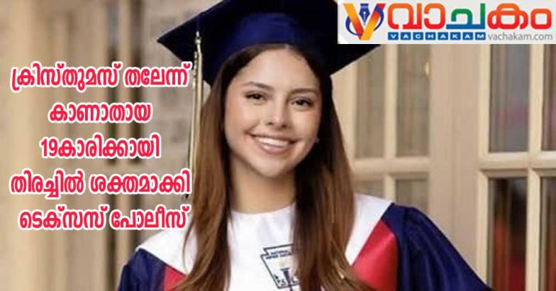 ക്രിസ്തുമസ് തലേന്ന് കാണാതായ 19കാരിക്കായി തിരച്ചിൽ ശക്തമാക്കി ടെക്‌സസ് പോലീസ്