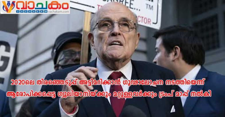 വാഷിംഗ്ടൺ ഡി.സി : 2020ലെ അമേരിക്കൻ പ്രസിഡൻഷ്യൽ തിരഞ്ഞെടുപ്പ് ഫലം അട്ടിമറിക്കാൻ ഗൂഢാലോചന നടത്തിയെന്ന് ആരോപിക്കപ്പെട്ട തന്റെ മുൻ അഭിഭാഷകൻ റൂഡി ഗ്യുലിയാനിയ്ക്കും മറ്റ് നിരവധി സഖ്യകക്ഷികൾക്കും യുഎസ് പ്രസിഡന്റ് ഡൊണാൾഡ് ട്രംപ് മാപ്പ് നൽകി.