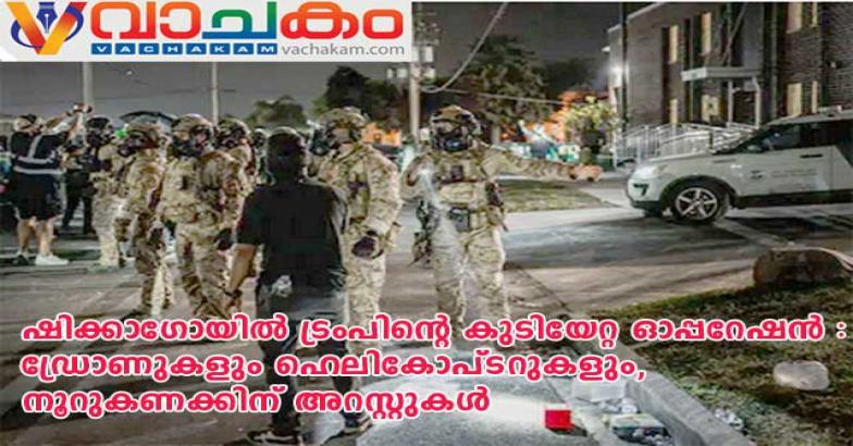 ഇല്ലീഗൽ കുടിയേറ്റത്തിനെതിരെ യുഎസ് പ്രസിഡന്റ് ട്രംപ് ഭരണകൂടം പ്രഖ്യാപിച്ച ഫെഡറൽ ഓപ്പറേഷൻ ഷിക്കാഗോയിൽ ശക്തിപ്പെടുത്തി. കഴിഞ്ഞ മൂന്നാഴ്ച മുൻപാണ് ഓപ്പറേഷൻ പ്രഖ്യാപിച്ചത്. ഡൗൺടൗൺ സ്ട്രീറ്റുകളിൽ ഏജന്റുമാരെ കണ്ടുതുടങ്ങി. നാഷണൽ ഗാർഡ് സൈനികരെയും വിന്യസിക്കാൻ സാധ്യതയുണ്ട്.