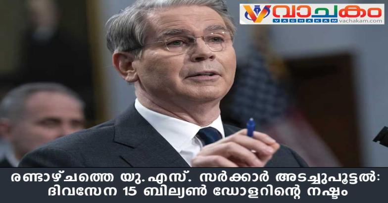 അമേരിക്കയിൽ രണ്ടാഴ്ചയായി തുടരുന്ന ഫെഡറൽ സർക്കാർ അടച്ചുപൂട്ടൽ രാജ്യത്തിന്റെ സാമ്പത്തികരംഗത്ത് കനത്ത പ്രഹരമേൽപ്പിക്കുന്നതായി റിപ്പോർട്ട്. പ്രതിദിനം ഏകദേശം 15 ബില്യൺ ഡോളറിന്റെ (ഏകദേശം 1,25,000 കോടിയിലധികം ഇന്ത്യൻ രൂപ) ഉത്പാദന നഷ്ടമാണ് അടച്ചുപൂട്ടൽ കാരണം അമേരിക്കൻ സമ്പദ്‌വ്യവസ്ഥയ്ക്ക് ഉണ്ടാകുന്നതെന്ന് ട്രഷറി സെക്രട്ടറി സ്‌കോട്ട് ബെസ്സന്റ് വ്യക്തമാക്കി.