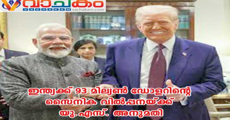 വാഷിംഗ്ടൺ ഡി.സി.  : ഇന്ത്യക്ക് ഏകദേശം 93 മില്യൺ ഡോളറിന്റെ (ഏകദേശം 773 കോടി ഇന്ത്യൻ രൂപ) സൈനിക വിൽപ്പനയ്ക്ക് നവംബർ 19ന് ട്രംപ് ഭരണകൂടം അനുമതി നൽകി. ഇരു രാജ്യങ്ങളും തമ്മിലുള്ള വർദ്ധിച്ചുവരുന്ന പ്രതിരോധ ബന്ധങ്ങൾക്ക് ഇത് അടിവരയിടുന്നു.