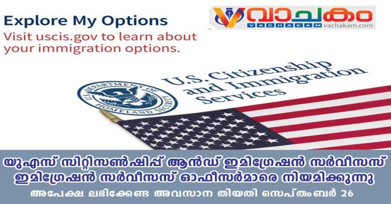 ഡാളസ്: യുഎസ് സിറ്റിസൺഷിപ്പ് ആൻഡ് ഇമിഗ്രേഷൻ സർവീസസ് (USCIS) ഇമിഗ്രേഷൻ സർവീസസ് ഓഫീസർമാരെ നിയമിക്കുന്നു.