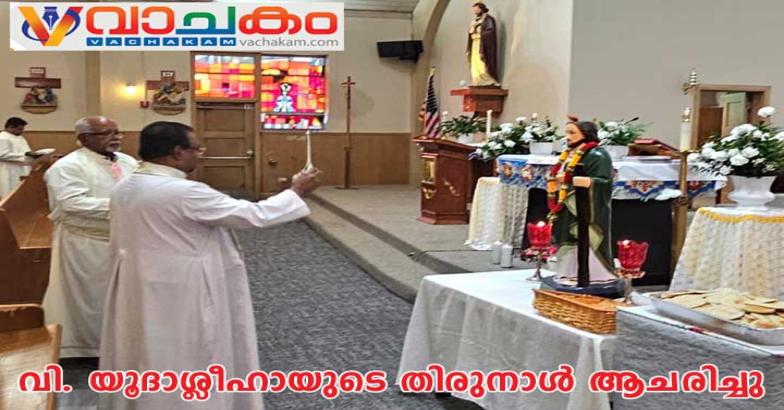 ഷിക്കാഗോ: ബെൻസൻവിൽ തിരുഹൃദയ ക്നാനായ കത്തോലിക്കാ ഇടവകദേവാലയത്തിൽ വി. യൂദാശ്ലീഹായുടെ തിരുനാൾ ഭക്തിപുരസരം ആചരിച്ചു