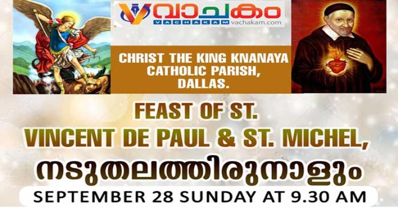ഡാളസ്സ് ക്രിസ്തുരാജ ക്നാനായ കത്തോലിക്ക ദൈവാലയത്തിൽ വി. വിൻസെന്റ് ഡി പോളിന്റെ തിരുന്നാളിനോട് അനുബദ്ധിച്ച് വിൻസെന്റ് ഡി പോൾ ദിനവും നടുതലത്തിരുന്നാളും സംയുക്തമായി ആഘോഷിക്കുന്നു.