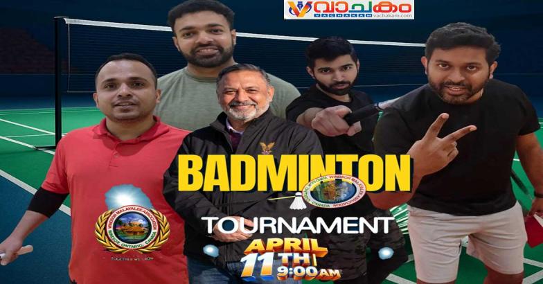 ഡിട്രോയിറ്റ്: വിൻസർ മലയാളി അസോസിയേഷന്റെ ആഭിമുഖ്യത്തിൽ ബാഡ്മിന്റൺ ഗ്രാൻഡ് ടൂർണമെന്റ് നടത്തപ്പെടുന്നു. ഏപ്രിൽ 11 ശനിയാഴ്ച്ച റോസ് സിറ്റി ഇസ്ലാമിക് സ്പോർട്സ് സെന്ററിൽ എംപി ഹാർബ് ഗിൽ ടൂർണമെന്റ് ഉദ്ഘാടനം ചെയ്യും.