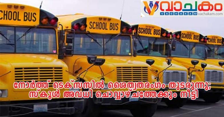 ടെക്സാസ് : നോർത്ത് ടെക്സസിൽ ശൈത്യകാല കാലാവസ്ഥയും മഞ്ഞുവീഴ്ചയും തുടരുന്ന സാഹചര്യത്തിൽ, പ്രദേശത്തെ സ്കൂളുകൾക്ക് ചൊവ്വാഴ്ചയും അവധി പ്രഖ്യാപിച്ചു. റോഡുകളിലെ മഞ്ഞുപാളികളും താഴ്ന്ന താപനിലയും യാത്രാതടസ്സമുണ്ടാക്കുന്നതിനാലാണ് വിദ്യാഭ്യാസ സ്ഥാപനങ്ങൾ പ്രവർത്തനങ്ങൾ നിർത്തിവെക്കാൻ തീരുമാനിച്ചത്.