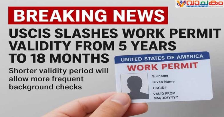 വാഷിംഗ്ടൺ ഡി.സി : ഇന്ത്യൻ പ്രൊഫഷണലുകൾക്ക് തിരിച്ചടി; യുഎസിൽ വർക്ക് പെർമിറ്റ് കാലാവധി വെട്ടിച്ചുരുക്കി. തൊഴിൽ അംഗീകാര രേഖകളുടെ (EADs) പരമാവധി കാലാവധി അമേരിക്കൻ പൗരത്വ, കുടിയേറ്റ സേവന വിഭാഗം (USCIS) ഗണ്യമായി കുറച്ചു. സുരക്ഷാ പരിശോധനകൾ ശക്തിപ്പെടുത്താനും വഞ്ചന തടയാനും വേണ്ടിയാണ് നടപടിയെന്ന് ഏജൻസി അറിയിച്ചു.