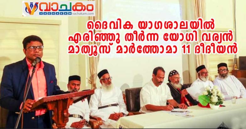 കോട്ടയം: ദൈവിക യാഗശാലയിൽ എരിഞ്ഞു തീർന്ന യോഗി വര്യനായിരുന്നു മാത്യൂസ് മാർത്തോമാ 11 ദീദീയൻ. ജീവിതം അചഞ്ചലമായ സമർപ്പണത്തിനും സമൂഹത്തിന്റെ നവോത്ഥാനത്തിനുമായി അദ്ദേഹം ഉപയോഗിച്ചു.