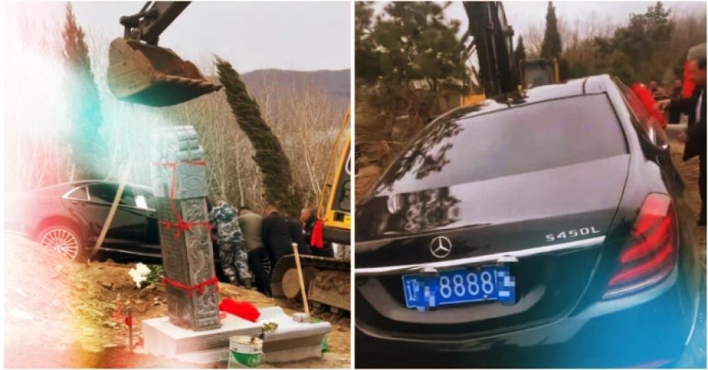 മെഴ്സിഡസ് ബെൻസ് എസ് 450 എൽ മോഡൽ കാറാണ് ശവകുടീരത്തിന് സമീപം വലിയ കുഴിയെടുത്ത് മറവു ചെയ്തത്. ഏകദേശം 1.49 കോടി രൂപയാണ് ഈ വാഹനത്തിന്റെ വിപണി വില. ഇതിനുപുറമെ ചൈനീസ് സംസ്കാരത്തിൽ ഭാഗ്യമായി കരുതുന്ന എട്ട് എന്ന അക്കം നാല് തവണ വരുന്ന പ്രത്യേക നമ്പർ പ്ലേറ്റും കാറിലുണ്ടായിരുന്നു.