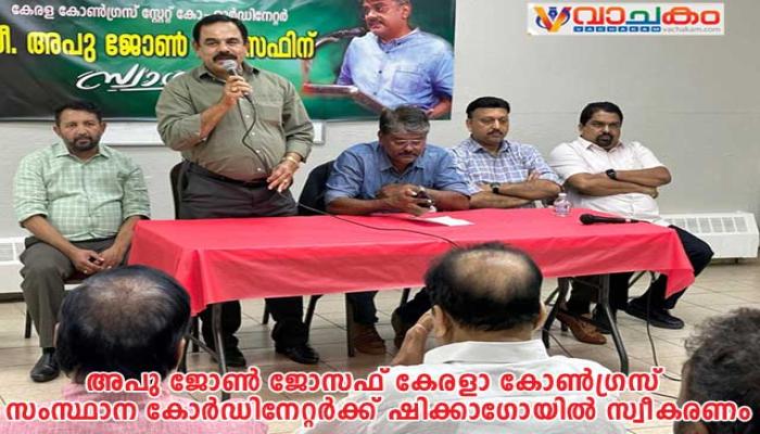 അപു ജോൺ ജോസഫ് കേരളാ കോൺഗ്രസ് സംസ്ഥാന കോർഡിനേറ്റർക്ക് ഷിക്കാഗോയിൽ സ്വീകരണം
