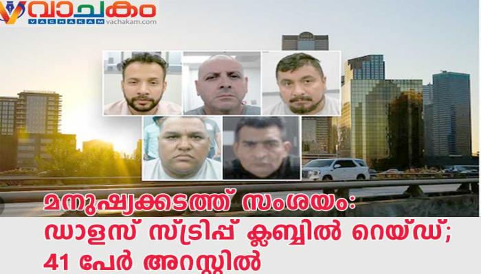 മനുഷ്യക്കടത്ത് സംശയം: ഡാളസ് സ്ട്രിപ്പ് ക്ലബ്ബിൽ റെയ്ഡ്; 41 പേർ അറസ്റ്റിൽ